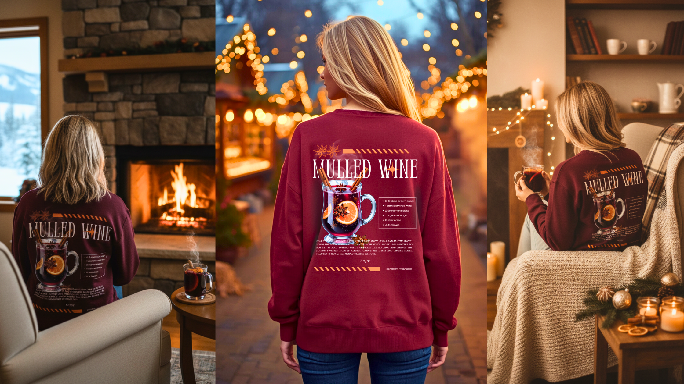 Wenn warme Lichter auf kalte Winterabende treffen, entsteht dieser besondere Moment voller Ruhe, Wärme und Genuss. Der Mulled Wine Sweater begleitet genau diese Augenblicke: ob vor dem knisternden Kamin, beim Spaziergang über den Weihnachtsmarkt oder eingekuschelt mit einer heißen Tasse Glühwein zu Hause.