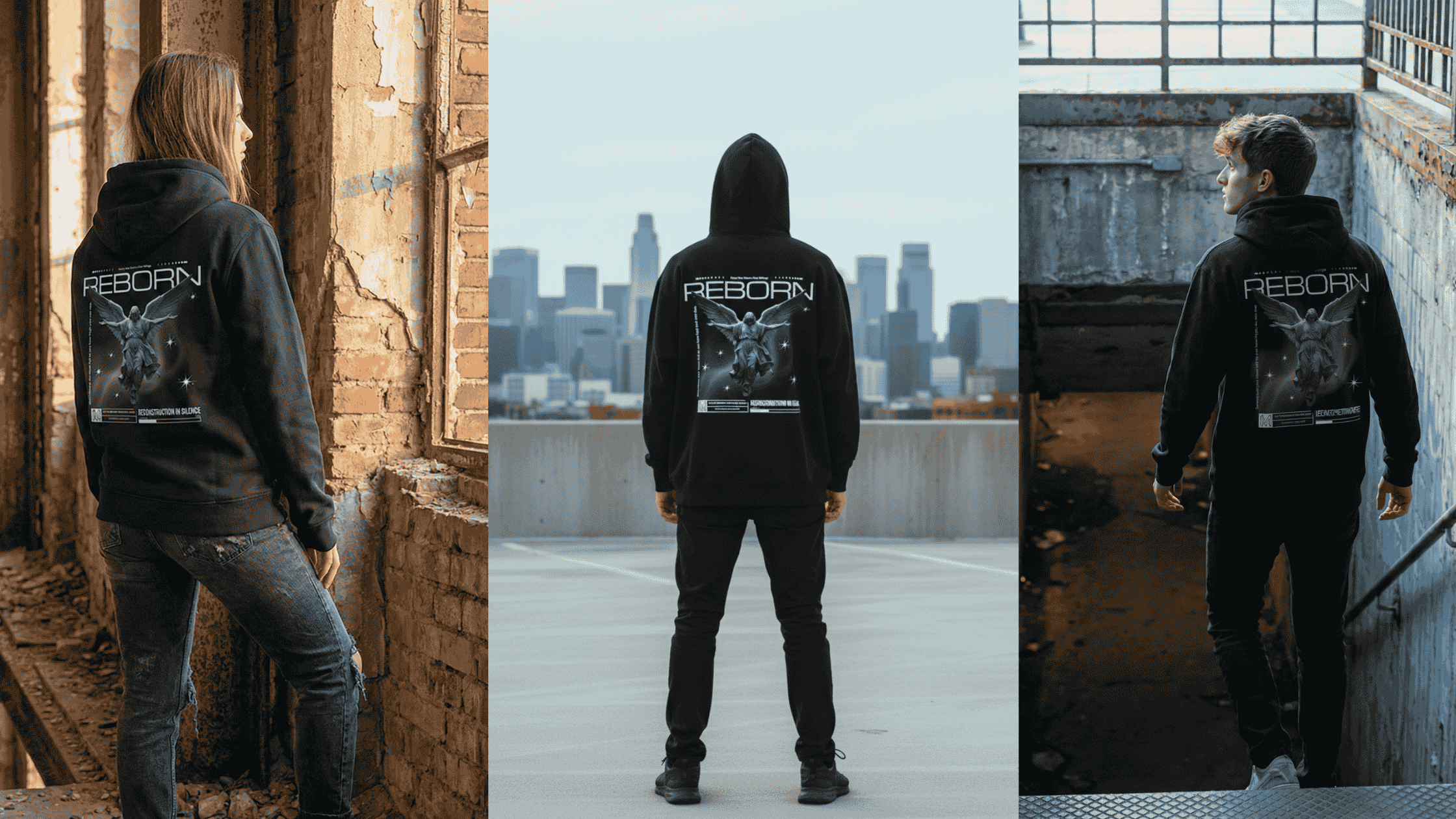 Zwischen Vergangenheit und Zukunft entsteht ein Moment des Neubeginns. Der „REBORN“ Hoodie steht für Wandel, innere Stärke und den Mut, neu anzufangen.
